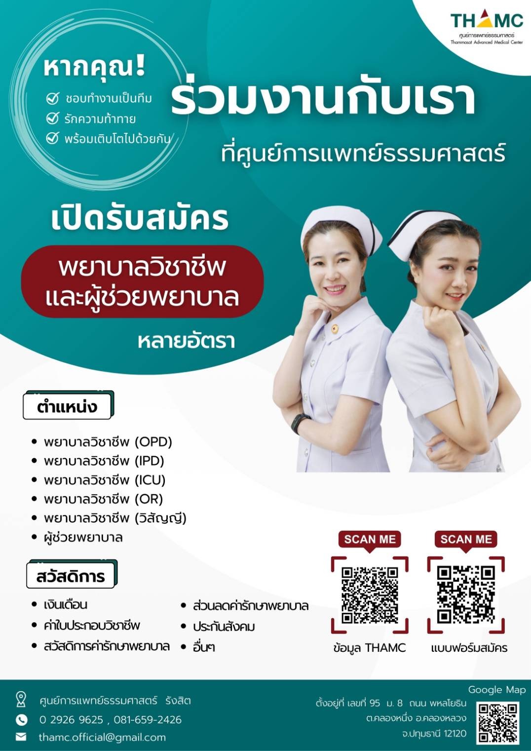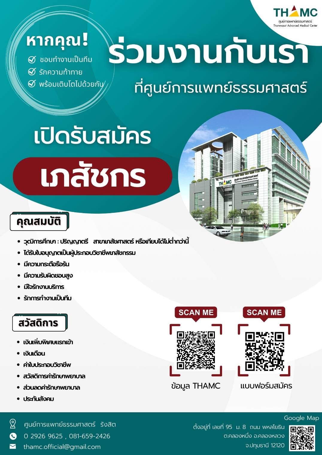 ศูนย์การแพทย์ธรรมศาสตร์ เปิดรับสมัครพนักงาน หลายอัตรา